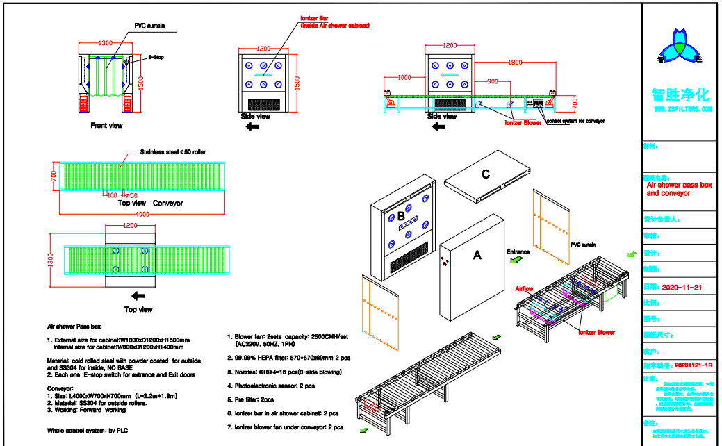 風淋傳遞窗和自動滾筒運輸機 Air shower and conveyor